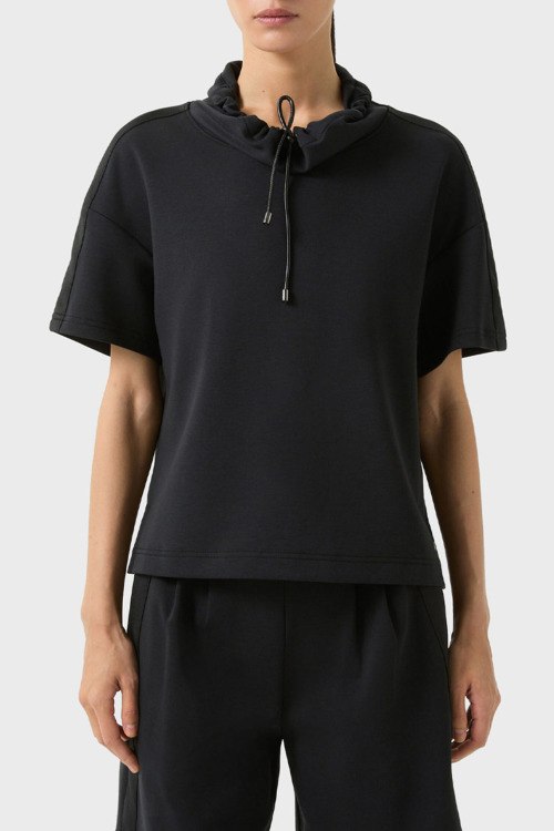 Детали: Женская черная футболка Fran из хлопкового микса от Bogner (Богнер). Классическая длина, воротник с утяжкой, короткие рукава с приспущенной линией плеча