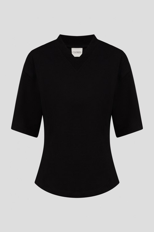 Детали: Женская черная хлопковая футболка от Closed (Клоузед). Вышитый логотип, V-образный вырез горловины, короткий рукав, классическая длина. Длина рукава: короткий, для размера S - 20,5 см, обхват груди: для размера S - 86 см, обхват талии: для размера S - 80 см, длина изделия по среднему шву спинки от горловины: для размера S - 55 см