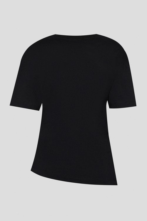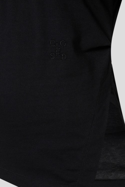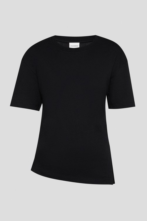 Детали: Женская черная хлопковая футболка от Closed (Клоузед). Вышитый логотип, круглый вырез горловины, короткий рукав, асимметричный нижний край. Длина рукава: короткий, для размера S - 20 см, обхват груди: для размера S - 82 см, обхват талии: для размера S - 76 см, длина изделия по среднему шву спинки от горловины: для размера S - 68 см