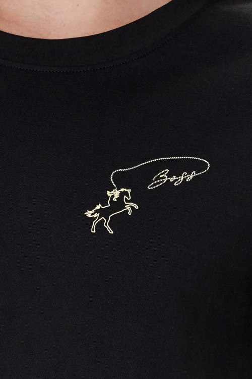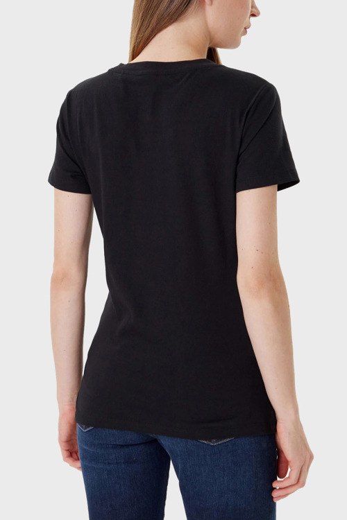 Детали: Женская черная хлопковая футболка C_Esogo от Hugo Boss (Хуго Босс). Логотип на груди, круглый вырез горловины, короткий рукав, классическая длина