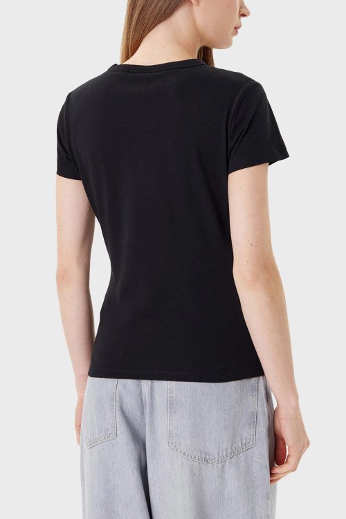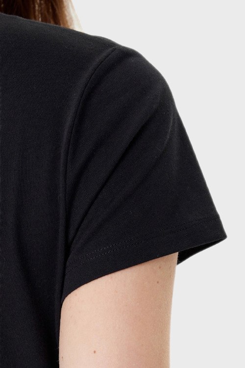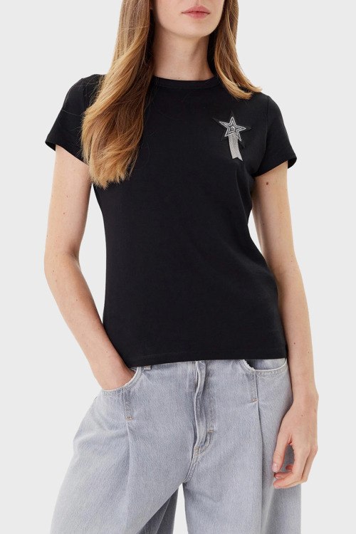 Детали: Женская черная хлопковая футболка Endora от Hugo Boss (Хуго Босс). Нашивка со звездой на груди, круглый вырез горловины, короткий рукав, классическая длина