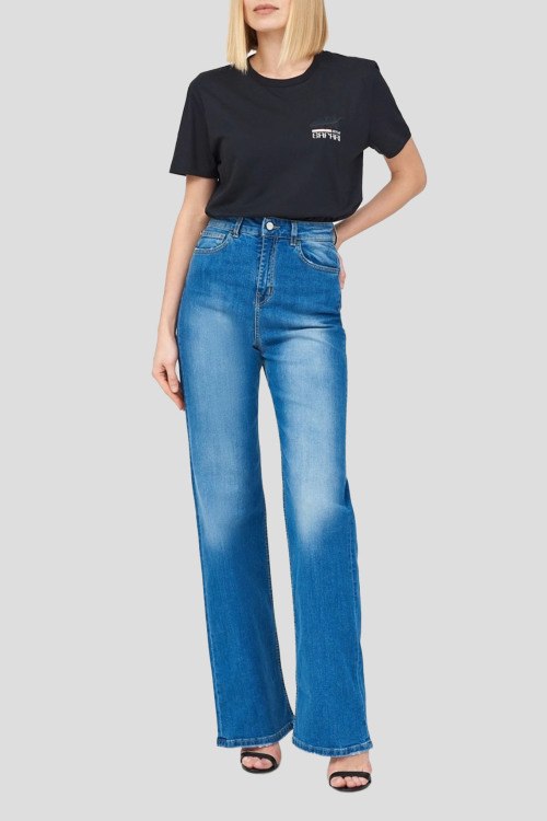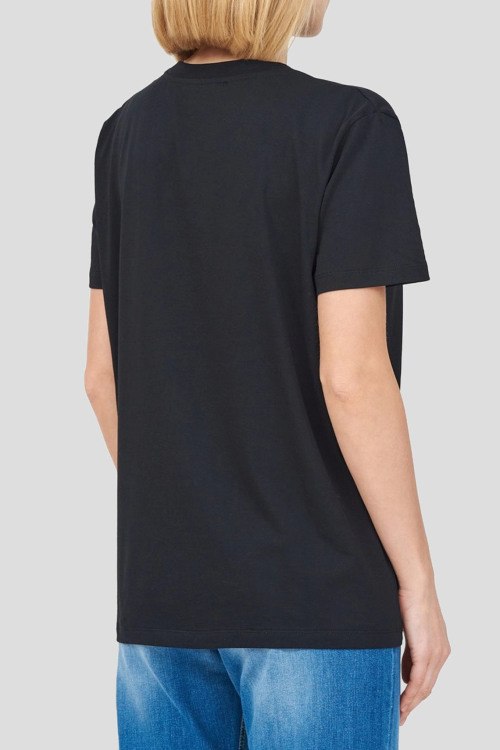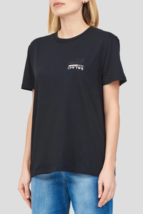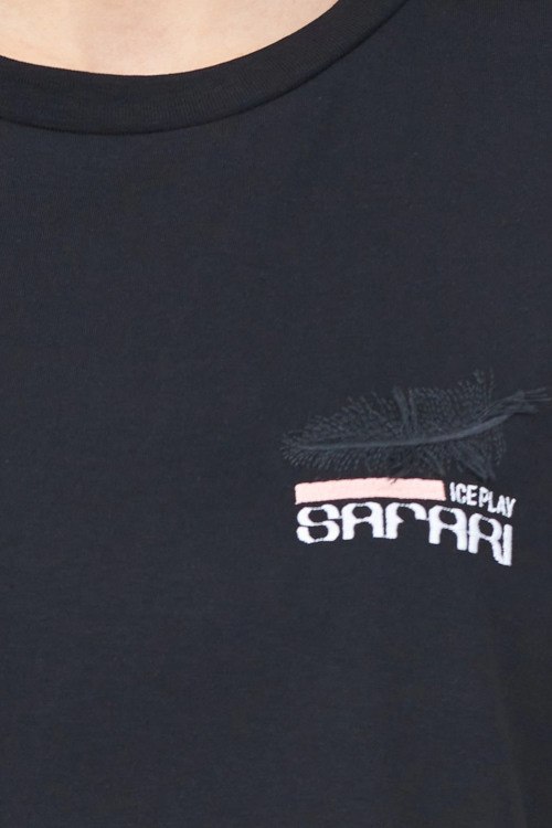 Детали: Женская черная футболка из хлопка от Ice Play (Айс Плей). Классическая длина, круглый вырез горловины, короткие рукава, принт на груди
