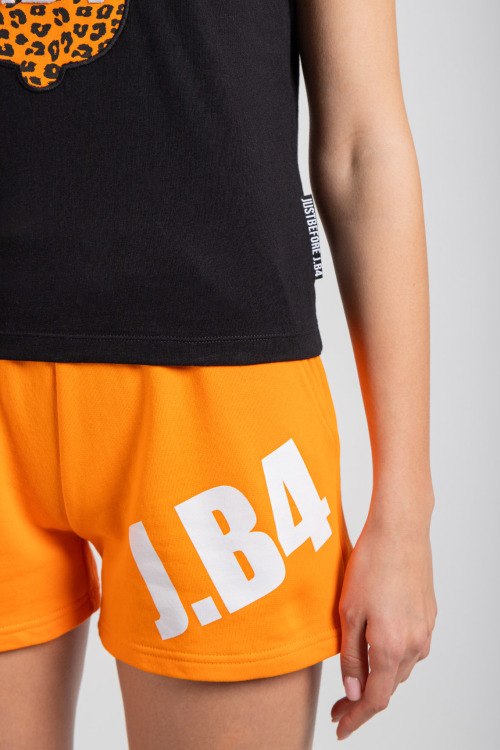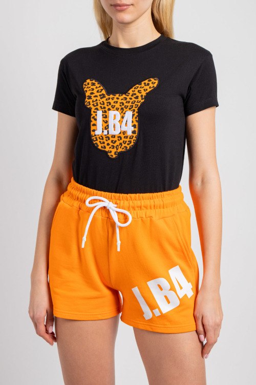 Детали: Женская черная футболка из хлопка от J.B4 Just Before (Джаст Бифо). Классическая длина, круглый вырез горловины, корокие рукава, на груди принт