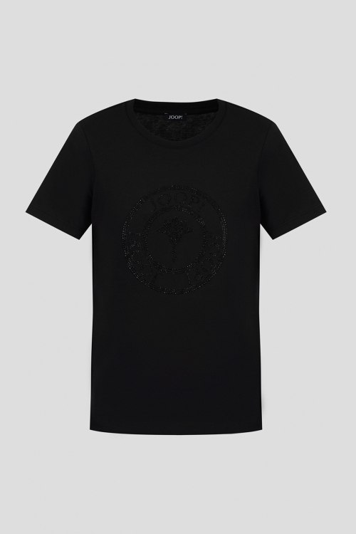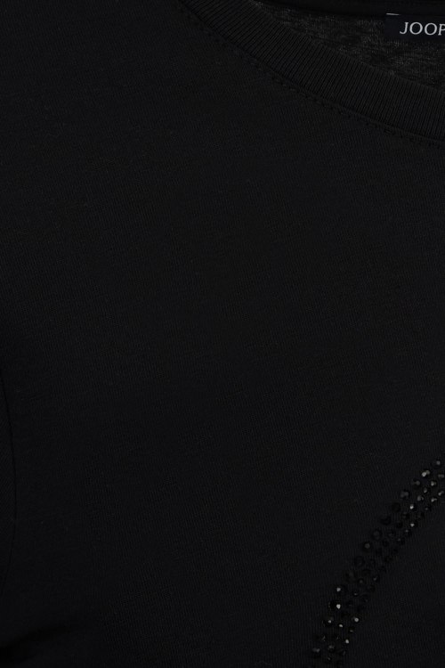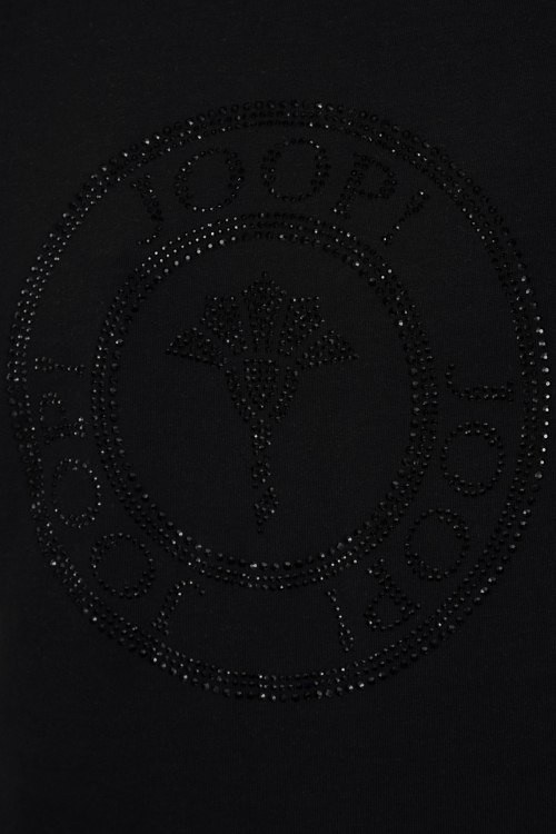 Детали: Женская черная хлопковая футболка от Joop! (Йооп!). Логотип из кристаллов, круглый вырез горловины, короткий рукав, классическая длина. Длина рукава: короткий, для размера 36 - 19 см, обхват груди: для размера 36 - 88 см, обхват талии: для размера 36 - 86 см, длина изделия по среднему шву спинки от горловины: для размера 36 - 58,5 см