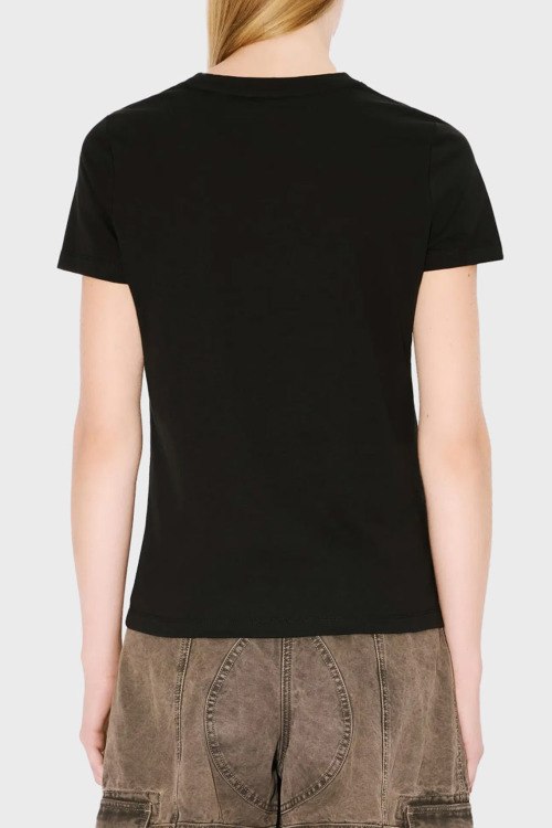 Детали: Женская черная хлопковая футболка Pop от Kenzo (Кензо). Цветочный принт с логотипом на груди, круглый вырез горловины, короткий рукав, классическая длина