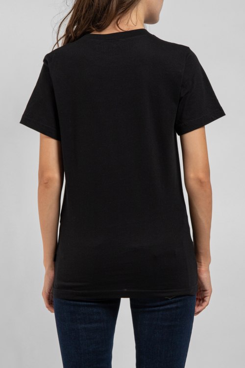 Женская черная хлопковая футболка от Ko Samui (Ко Самуи). Принт на груди, круглый вырез горлоивны, короткий рукав, классическая длина.