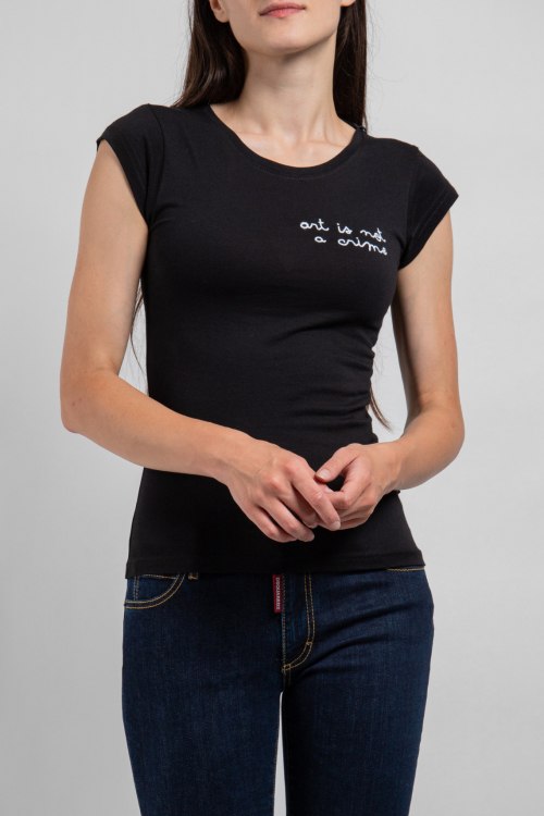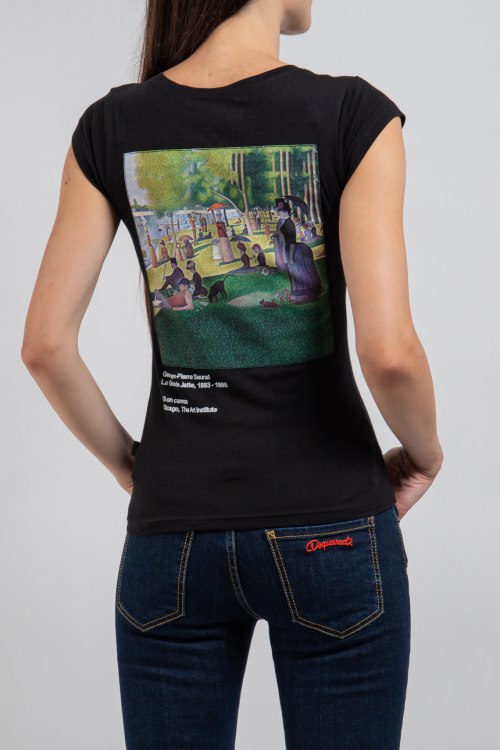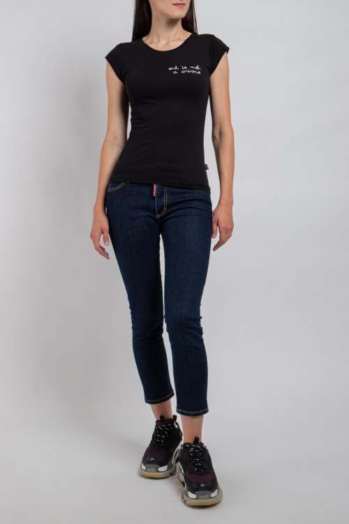 Женская черная футболка из хлопка от Ko Samui (Ко Самуи). Классическая длина. круглый вырез горловины, короткие рукава, двухсторонний принт.