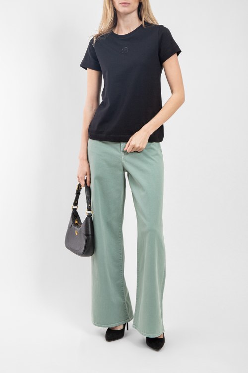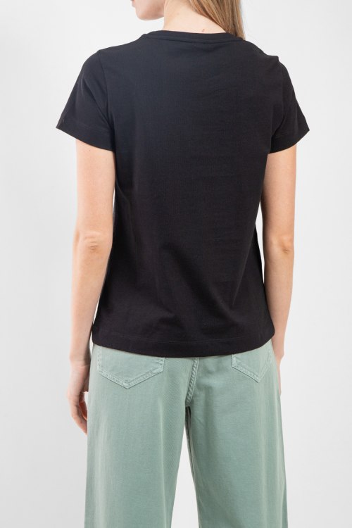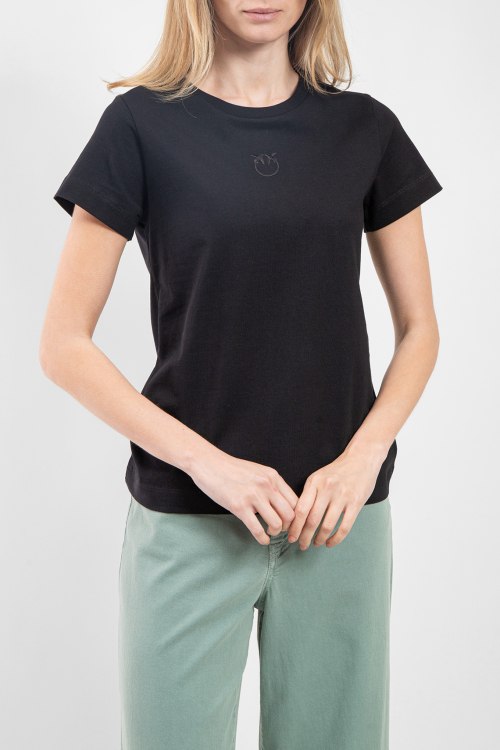 Детали: Женская черная хлопковая футболка от Pinko (Пинко). Логотип на груди, круглый вырез горловины, короткий рукав, классическая длина