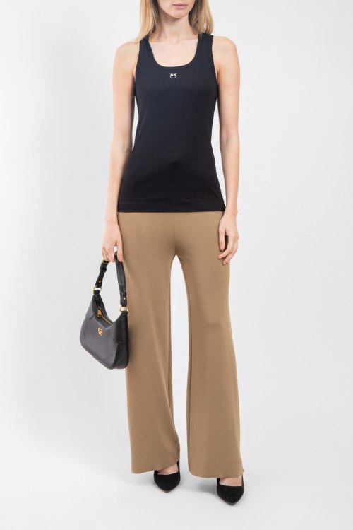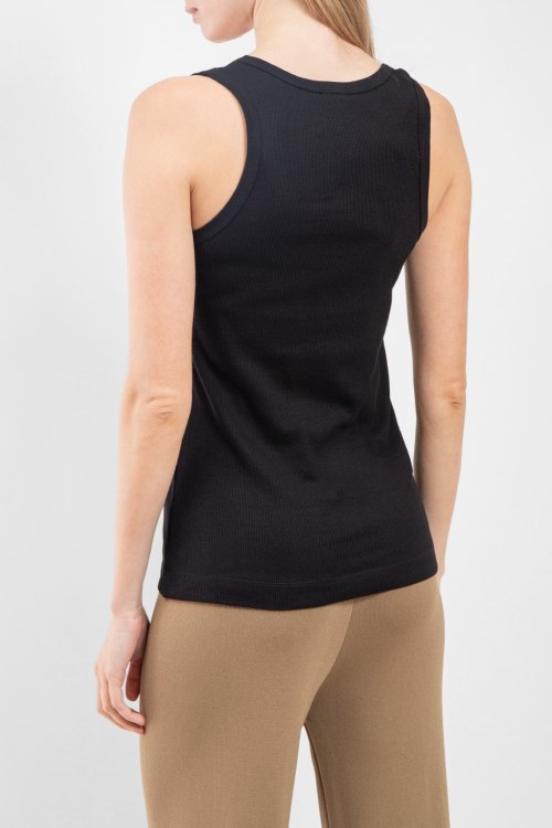 Женская черная хлопковая майка от Pinko (Пинко). Модель без рукавов, дизайн в рубчик, логотип на груди, круглый вырез, классическая длина.