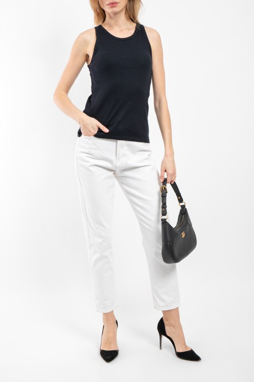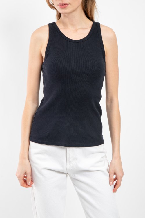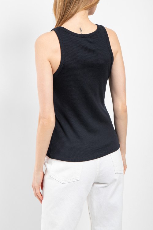 Женская черная хлопковая майка от Yerse (Йерс). Модель без рукавов, дизайн в рубчик, круглый вырез, классическая длина.
