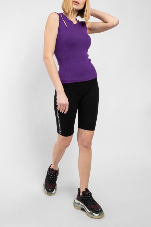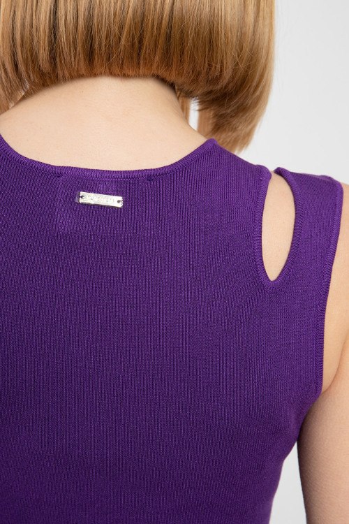 Детали: Женский фиолетовый топ из вискозы от No Secrets (Ноу Сикретс). Модель без рукавов, дизайн в рубчик, круглый вырез горловины, декоративный вырез на плече, классическая длина