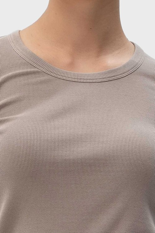Детали: Женская светло-коричневая хлопковая футболка Zanora от Max Mara Weekend (Макс Мара Викенд). Круглый вырез горловины, короткий рукав, классическая длина