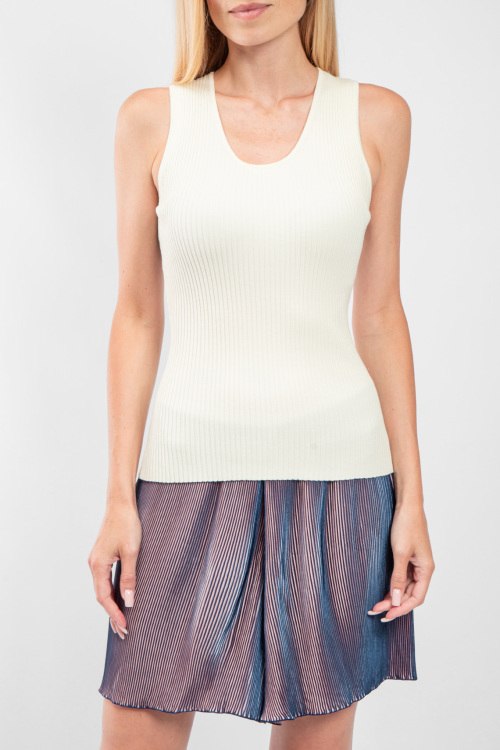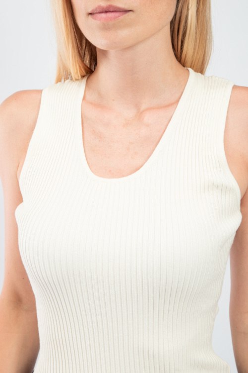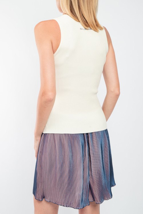 Детали: Женская хлопковая майка молочного оттенка от Balenciaga (Баленсиага). Модель без рукавов, дизайн в рубчик, вышитый логотип на спине, классическая длина