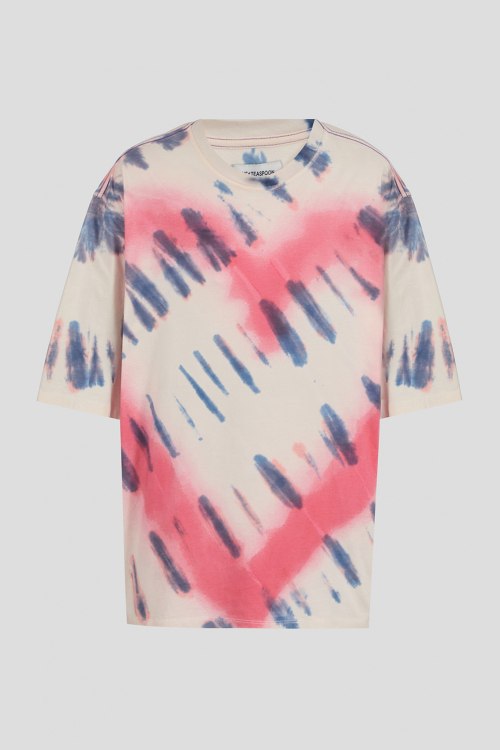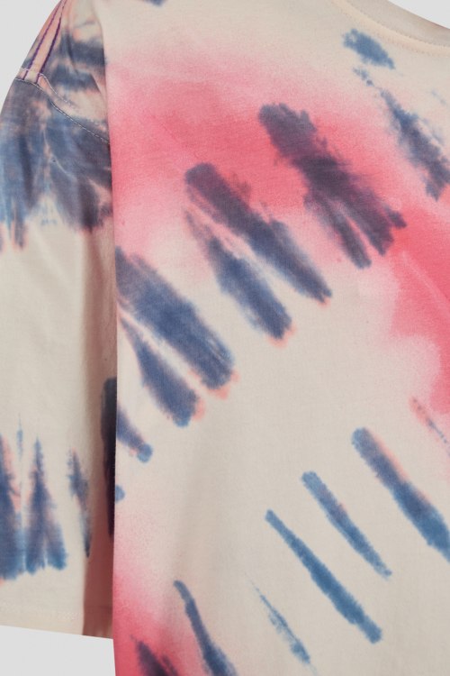 Детали: Женская хлопковая футболка молочного оттенка от One Teaspoon (Ван Тиспун). Принт тай-дай, круглый вырез горловины, короткий рукав. Длина рукава: короткий, для размера S - 29 см, обхват груди: для размера S - 122 см, обхват талии: для размера S - 122 см, длина изделия по среднему шву спинки от горловины: для размера S - 68 см