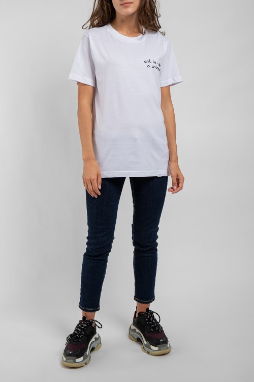 Женская белая хлопковая футболка от Ko Samui (Ко Самуи). Двухсторонний принт, круглый вырез горлоивны, короткий рукав, классическая длина.