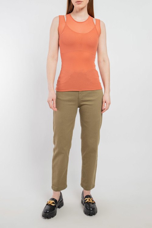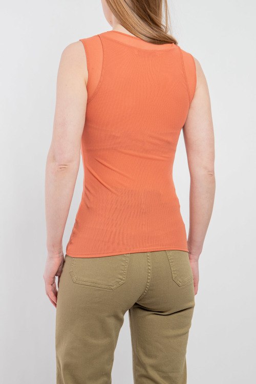 Детали: Женская терракотовая майка от Max Mara (Макс Мара). Многослойный дизайн, круглый вырез, гирокие шлейки, классическая длина