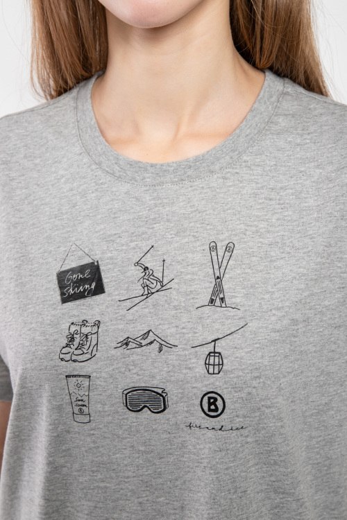 Детали: Женская серая хлопковая футболка Lotte от Bogner (Богнер). Принт на груди, круглый вырез горловины, короткий рукав, классическая длина