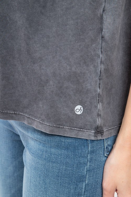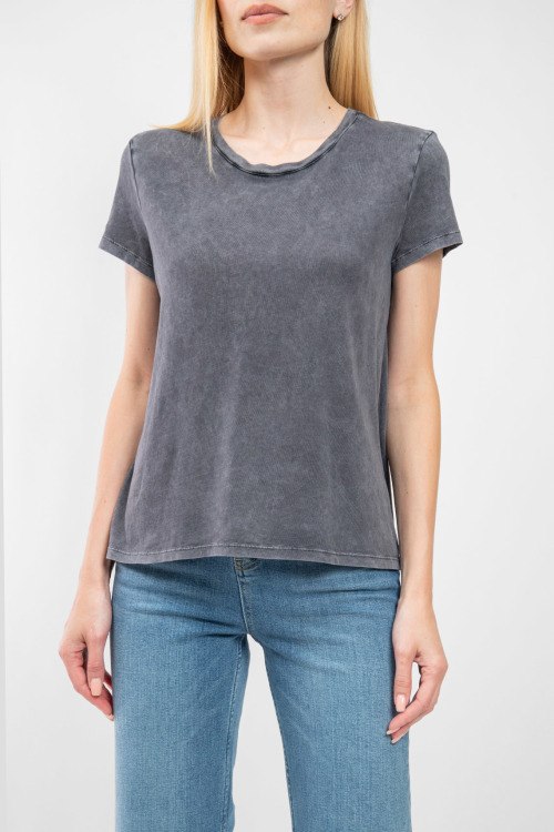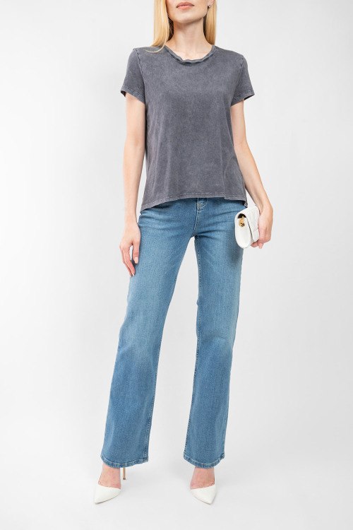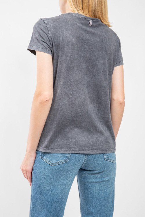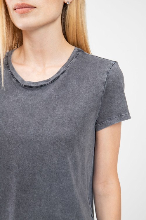 Женская серая хлопковая футболка от Deha (Деха). Круглый вырез горловины, короткий рукав, классическая длина.