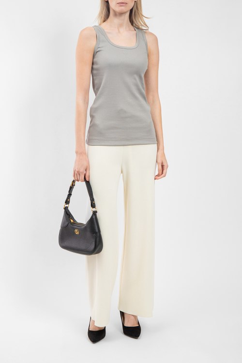 Женская серая хлопковая майка от Pinko (Пинко). Модель без рукавов, дизайн в рубчик, логотип на груди, круглый вырез, классическая длина.