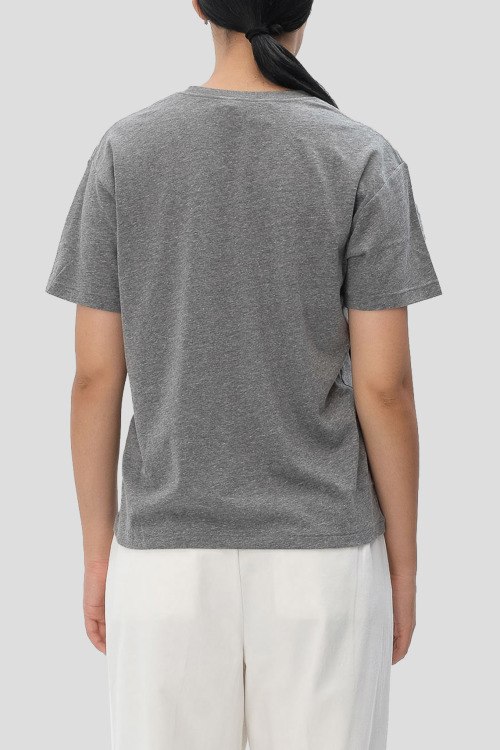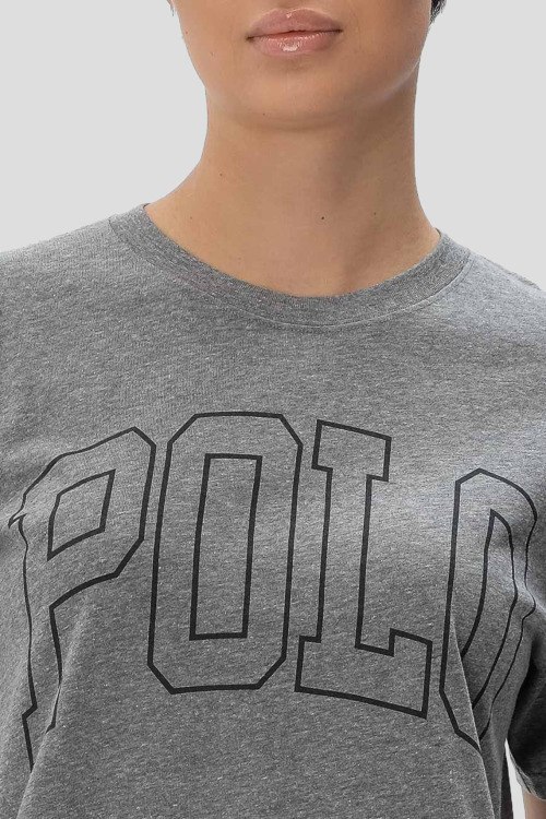 Детали: Женская серая хлопковая футболка от Polo Ralph Lauren (Поло Ральф Лорен). Логотип на груди, круглый вырез горловины, короткий рукав, классическая длина