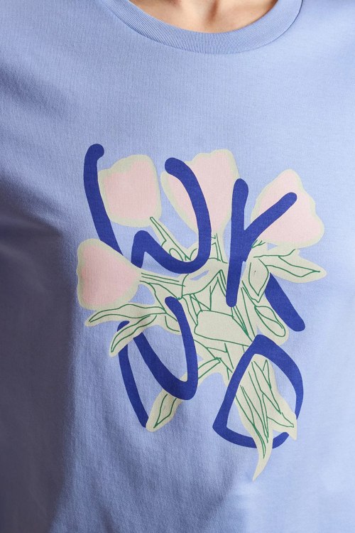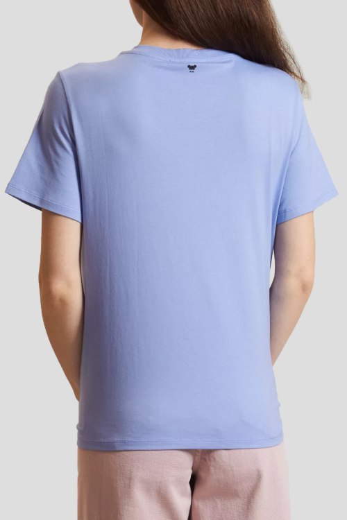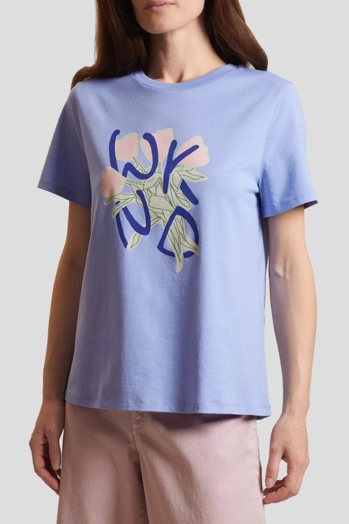 Детали: Женская сиреневая футболка из хлопка от Max Mara (Макс Мара). Классическая длина, кргулый вырез горловины, короктие рукава, декорирована принтом на груди