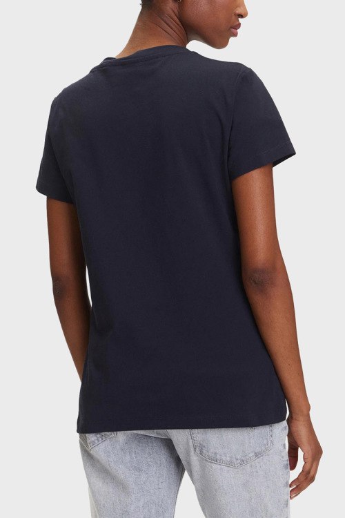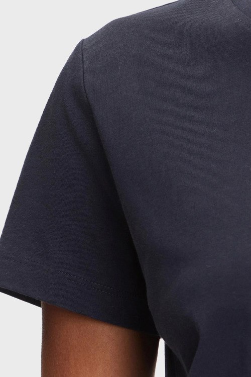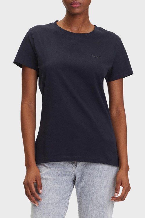Детали: Женская темно-синяя хлопковая футболка C_Esogo от Hugo Boss (Хуго Босс). Логотип на груди, круглый вырез горловины, короткий рукав, классическая длина