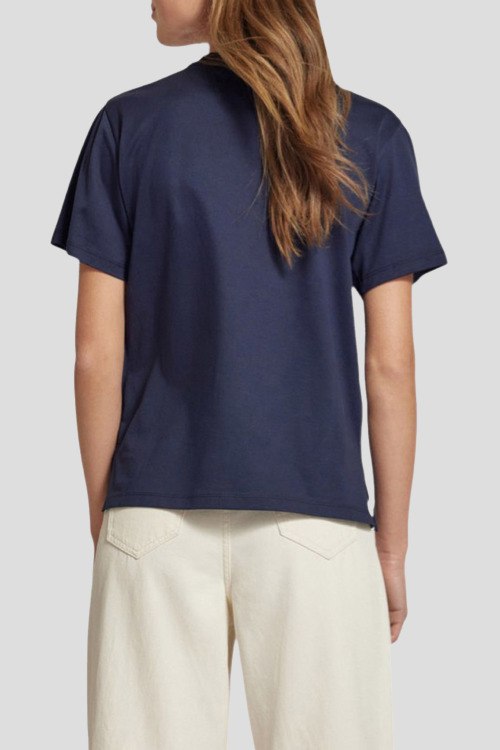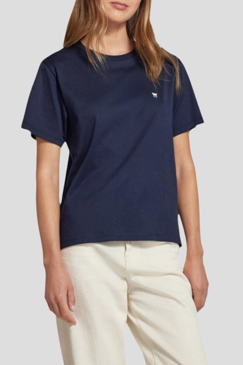 Детали: Женская темно-синяя хлопковая футболка Venaco от Max Mara Weekend (Макс Мара Викенд). Логотип на груди, круглый вырез горловины, короткий рукав, классическая длина