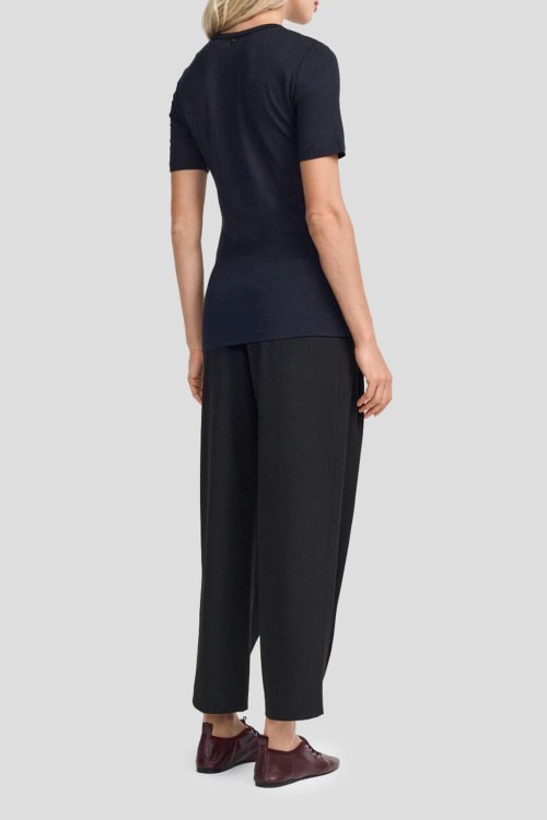 Детали: Женская темно-синяя футболка из вискозы от Rich & Royal (Рич энд Роял). Круглый вырез горловины, короткий рукав, классическая длина. Длина рукава: короткий, для размера S - 22 см, обхват груди: для размера S - 82 см, обхват талии: для размера S - 70 см, длина изделия по среднему шву спинки от горловины: для размера S - 56 см