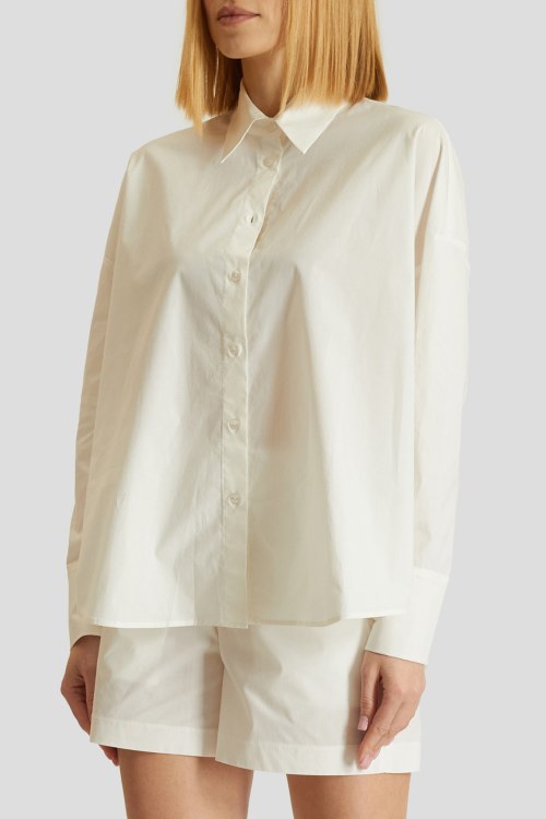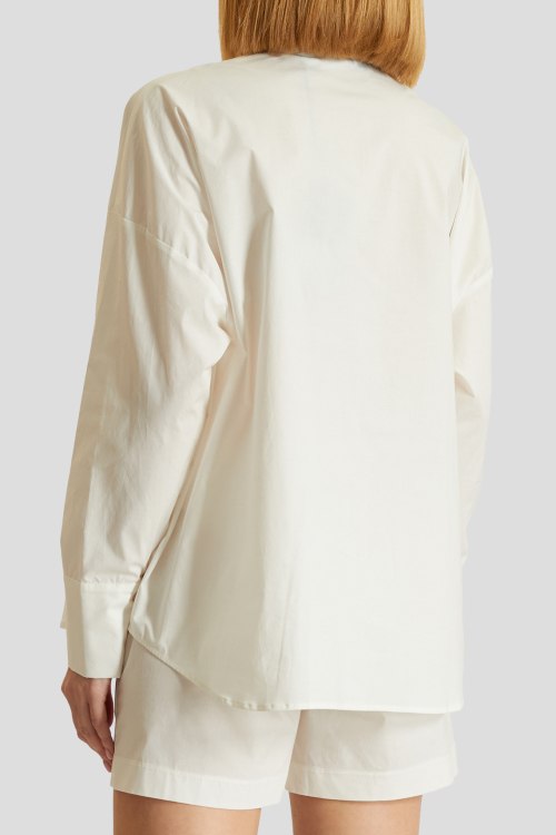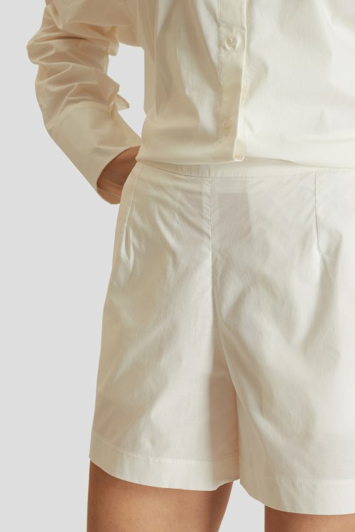 Женский белый хлопковый костюм от Federica Tosi (Федерика Тоси). Рубашка: отложной воротник, застежка на пуговицы, манженты на пуговицах, классическая длина. Шорты: боковые карманы, застежка-молния сбоку, короткая длина.