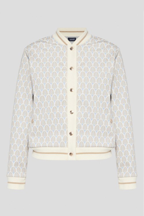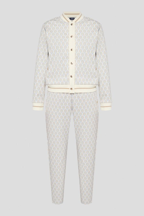 Детали: Женский трикотажный костюм от Joop! (Йооп!). Бомбер: узор паттерн-лого, воротник-стойка, боковые карманы, застежка на кнопки, трикотажные манжеты и нижний край. Длина рукава: длинный, для размера 36 - 60 см, обхват груди: для размера 36 - 101 см, обхват талии: для размера 36 - 98 см, длина изделия по среднему шву спинки от горловины: для размера 36 - 53 см. Брюки: эластичный пояс с логотипом, узор паттерн-лого, боковые карманы. Обхват пояса: для размера 36 - 74 см, обхват бедер: для размера 36 - 102 см, длина штанины: для размера 36 - 101 см, длина по шаговому шву: для размера 36 - 75 см