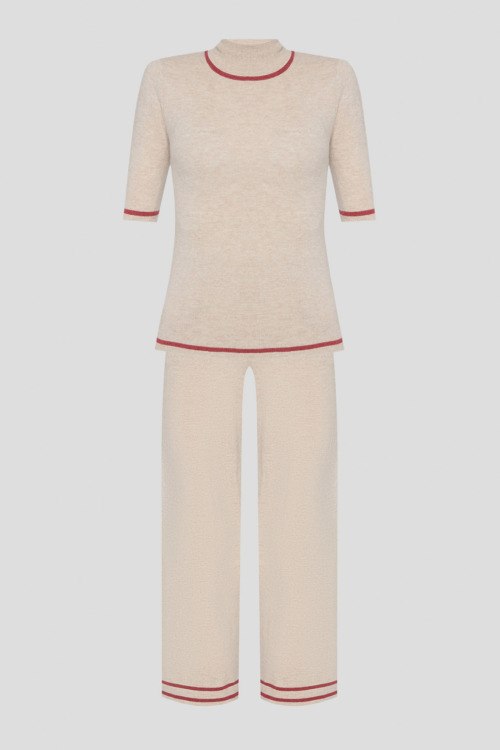 Детали: Женский бежевый шерстяной костюм от Not Shy (Нот Шай). Джемпер: воротник-стойка, контрастная отделка, короткий рукав, классическая длина. Длина рукава: короткий, для размера S - 27 см, обхват груди: для размера S - 74 см, обхват талии: для размера S - 74 см, длина изделия по среднему шву спинки от горловины: для размера S - 57 см. Брюки: эластичный пояс, контрастная отделка, полная длина. Обхват пояса: для размера S - 68 см, обхват бедер: для размера S - 80 см, длина штанины: для размера S - 106 см, длина по шаговому шву: для размера S - 77 см