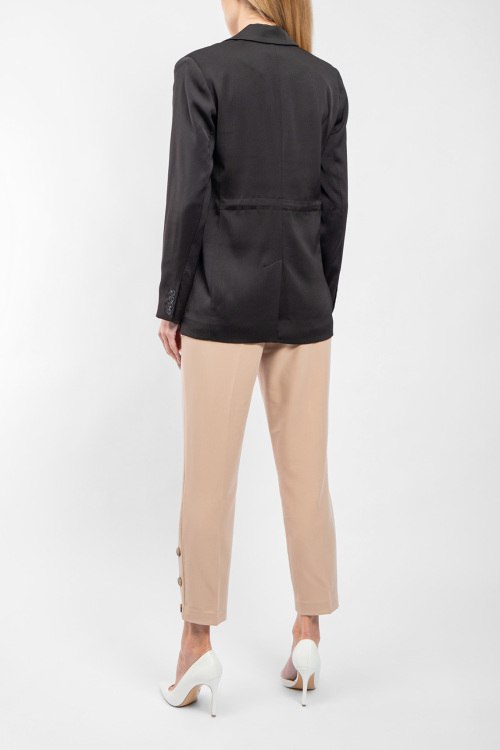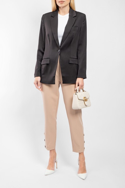 Детали: Женский черно-бежевый брючный костюм от Lascana (Ласкана). Жакет: отложной воротник, три кармана, застежка на одну пуговицу, классическая длина. Брюки: дизайн со стрелками, в поясе с петлями для ремня, боковые карманы, внизу сбоку на пуговицах