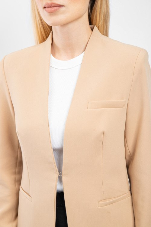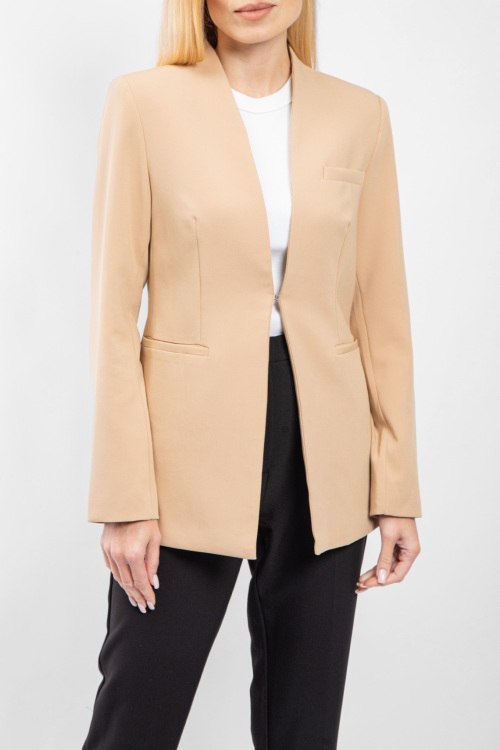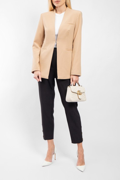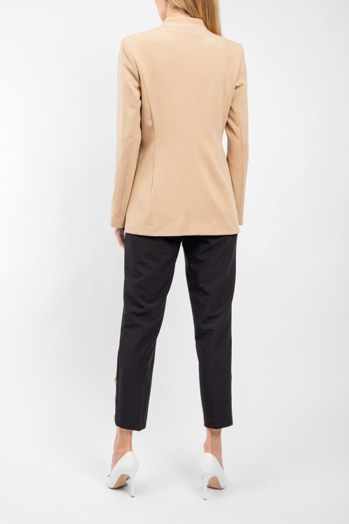 Детали: Женский черно-бежевый брючный костюм от Lascana (Ласкана). Жакет: модель без воротника, три кармана, застежка на крючок, классическая длина. Брюки: дизайн со стрелками, в поясе с петлями для ремня, боковые карманы, внизу сбоку на пуговицах