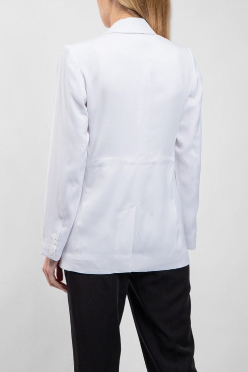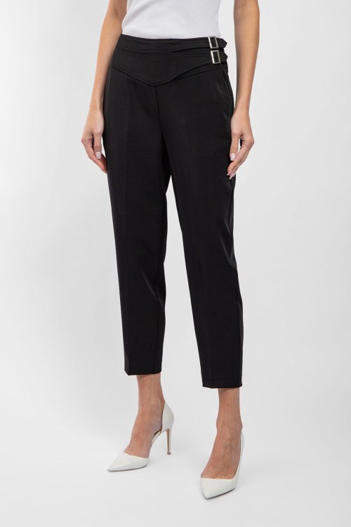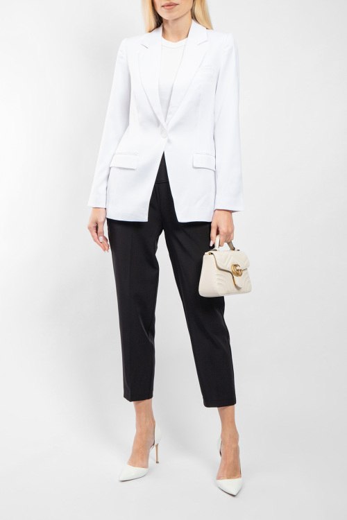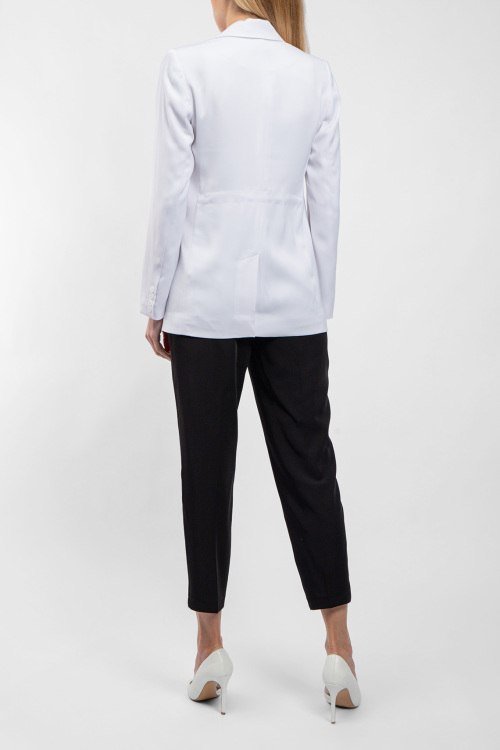 Детали: Женский черно-белый брючный костюм от Lascana (Ласкана). Жакет: отложной воротник, три кармана, застежка на одну пуговицу, классическая длина. Брюки: в талии с пряжками, боковые карманы, укороченная длина