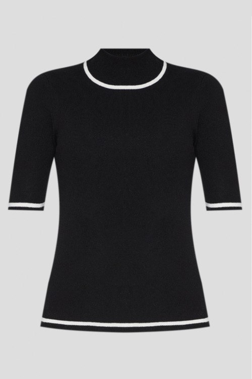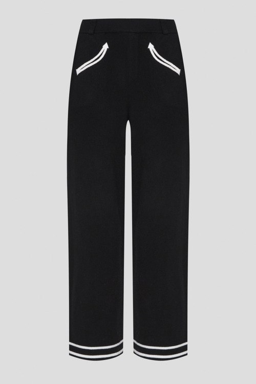 Детали: Женский черный шерстяной костюм от Not Shy (Нот Шай). Джемпер: воротник-стойка, контрастная отделка, короткий рукав, классическая длина. Длина рукава: короткий, для размера S - 27 см, обхват груди: для размера S - 74 см, обхват талии: для размера S - 74 см, длина изделия по среднему шву спинки от горловины: для размера S - 57 см. Брюки: эластичный пояс, контрастная отделка, полная длина. Обхват пояса: для размера S - 68 см, обхват бедер: для размера S - 80 см, длина штанины: для размера S - 106 см, длина по шаговому шву: для размера S - 77 см