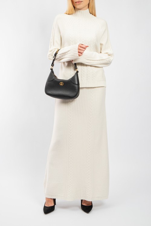 Женский трикотажный костюм молочного оттенка от Clothe (Клозе). Джемпер: узор косичкой, воротник-стойка, классическая длина, манжеты и нижний край в рубчик. Юбка: узор косичкой, эластичный пояс, длина-макси. Размер вещи на фото: Uni. Замеры: длина: 60,5 см, ширина по груди: 50 см, ширина по талии 50 см длина рукава по внутреннему шву: 46 см, ширина рукава 18 см, юбка: длина 104 см, пояс 37 см (есть резинка), ширина по бедрам 44 см.