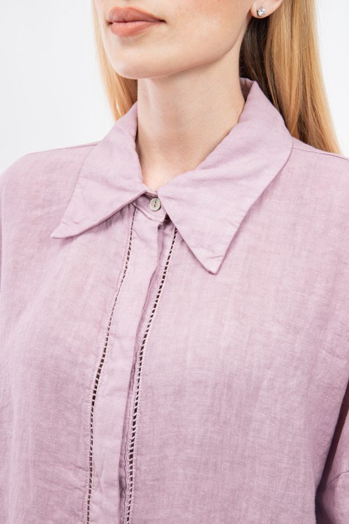 Женский розовый льняной брючный костюм от Atelier Emi (Ателье Эми). Рубашка: отложной воротник, скрытая застежка на пуговицы, широкий рукав, классическая длина. Брюки: эластичный пояс с петлями для ремня, боковые карманы, широкий крой, полная длина. Замеры для размера XL: Рубашка: длина: 68 см, ширина по груди: 64 см, ширина по талии 61 см, ширина по бедрам 61 см, длина рукава: 40 см, ширина рукава 21 см. Брюки: длина: 112 см, ширина штанины вверху 35 см, высота сидения 37 см, ширина по поясу (резинка) 39 см, ширина по бедрам 53 см.