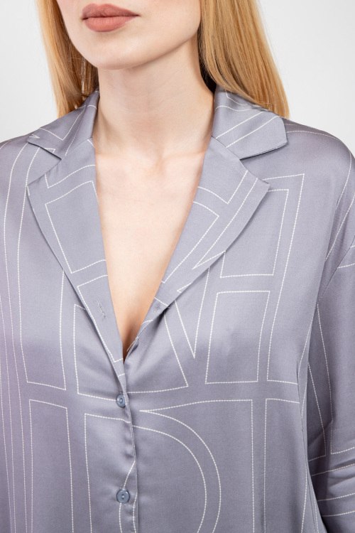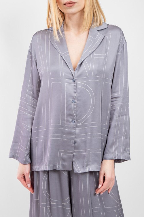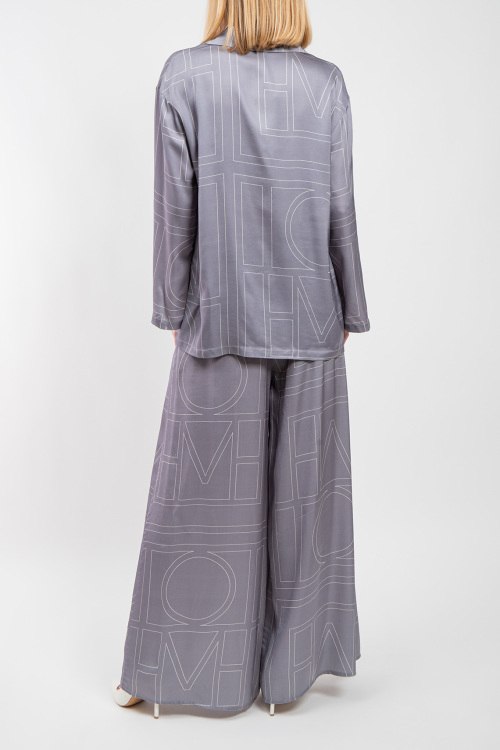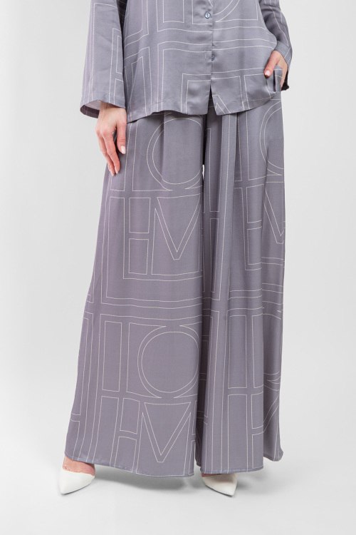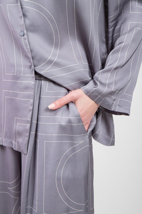 Женский серый костюм из вискозы от Clothe (Клозе). Дизайн с узором, рубащка на пуговицах, отложной воротник, длинные рукава, классическая длина, свободный крой, эластичная резинка на поясе. Замеры для размера S: рубашка: длина: 70 см, ширина по груди 55 см, ширина по талии 56 см, ширина по бедрам 59 см, длина рукава 40 см, ширина рукава 16 см, Брюки: длина: 110 см, ширина штанины вверху 40 см, высота сидения 38 см, ширина по поясу (резинка) 36 см, ширина по бедрам 51 см.