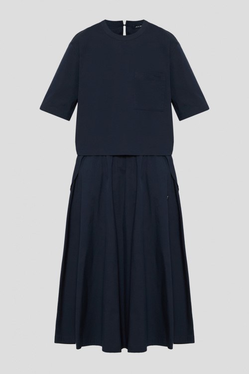 Детали: Женский темно-синий хлопковый костюм от Joop! (Йооп!). Футболка: круглый вырез горловины, карман с логотипом на груди, короткий рукав, классическая длина. Длина рукава: короткий, для размера 36 - 27 см, обхват груди: для размера 36 - 105 см, обхват талии: для размера 36 - 110 см, длина изделия по среднему шву спинки от горловины: для размера 36 - 46 см. Юбка: эластичный пояс, боковые карманы. Обхват пояса: для размера 36 - 72 см, обхват бедер: для размера 36 - 142 см, длина изделия по среднему шву спинки: для размера 36 - 78 см