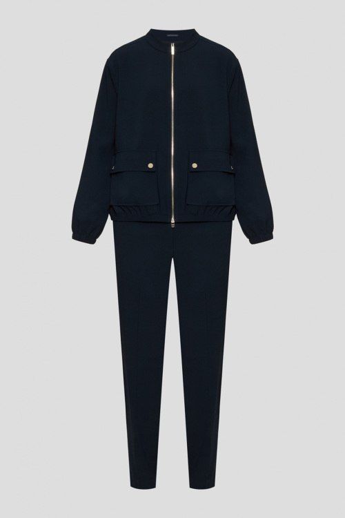 Детали: Женский темно-синий костюм от Joop! (Йооп!). Кардиган: воротник-стойка, передние карманы, застежка-молния, классическая длина. Длина рукава: длинный, для размера 36 - 56 см, обхват груди: для размера 36 - 108 см, обхват талии: для размера 36 - 104 см, длина изделия по среднему шву спинки от горловины: для размера 36 - 54 см. Брюки: застежка на молнию и крючок, боковые карманы, узкий крой. Обхват пояса: для размера 36 - 74 см, обхват бедер: для размера 36 - 102 см, длина штанины: для размера 36 - 97 см, длина по шаговому шву: для размера 36 - 71 см