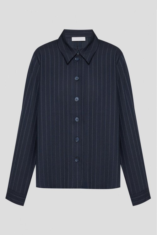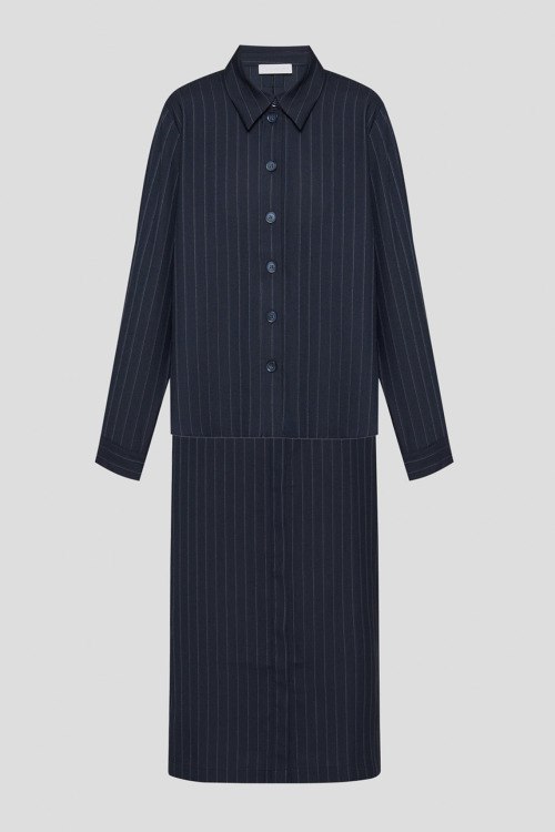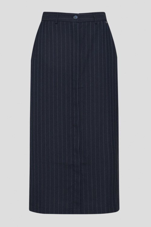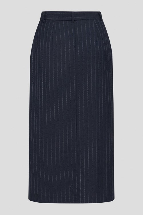 Детали: Женский темно-синий костюм из вискозного микса от Rich & Royal (Рич энд Роял). Рубашка: тонкая полоска, отложной воротник, застежка на пуговицы. Длина рукава: длинный, для размера 38 - 61 см, обхват груди: для размера 38 - 108 см, обхват талии: для размера 38 - 108 см, длина изделия по среднему шву спинки от горловины: для размера 38 - 66 см. Юбка: тонкая полоска, боковые карманы, пояс с петлями для ремня. Обхват пояса: для размера 38 - 74 см, обхват бедер: для размера 38 - 102 см, длина изделия по среднему шву спинки: для размера 38 - 84 см