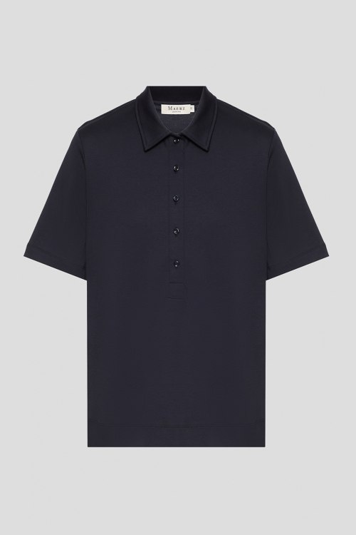 Детали: Женская черная хлопковая футболка-поло от Maerz (Маерз). Отложной воротник, застежка на пуговицы, короткий рукав, классическая длина. Длина рукава: короткий, для размера 36 - 25 см, обхват груди: для размера 36 - 100 см, обхват талии: для размера 36 - 100 см, длина изделия по среднему шву спинки от горловины: для размера 36 - 62 см